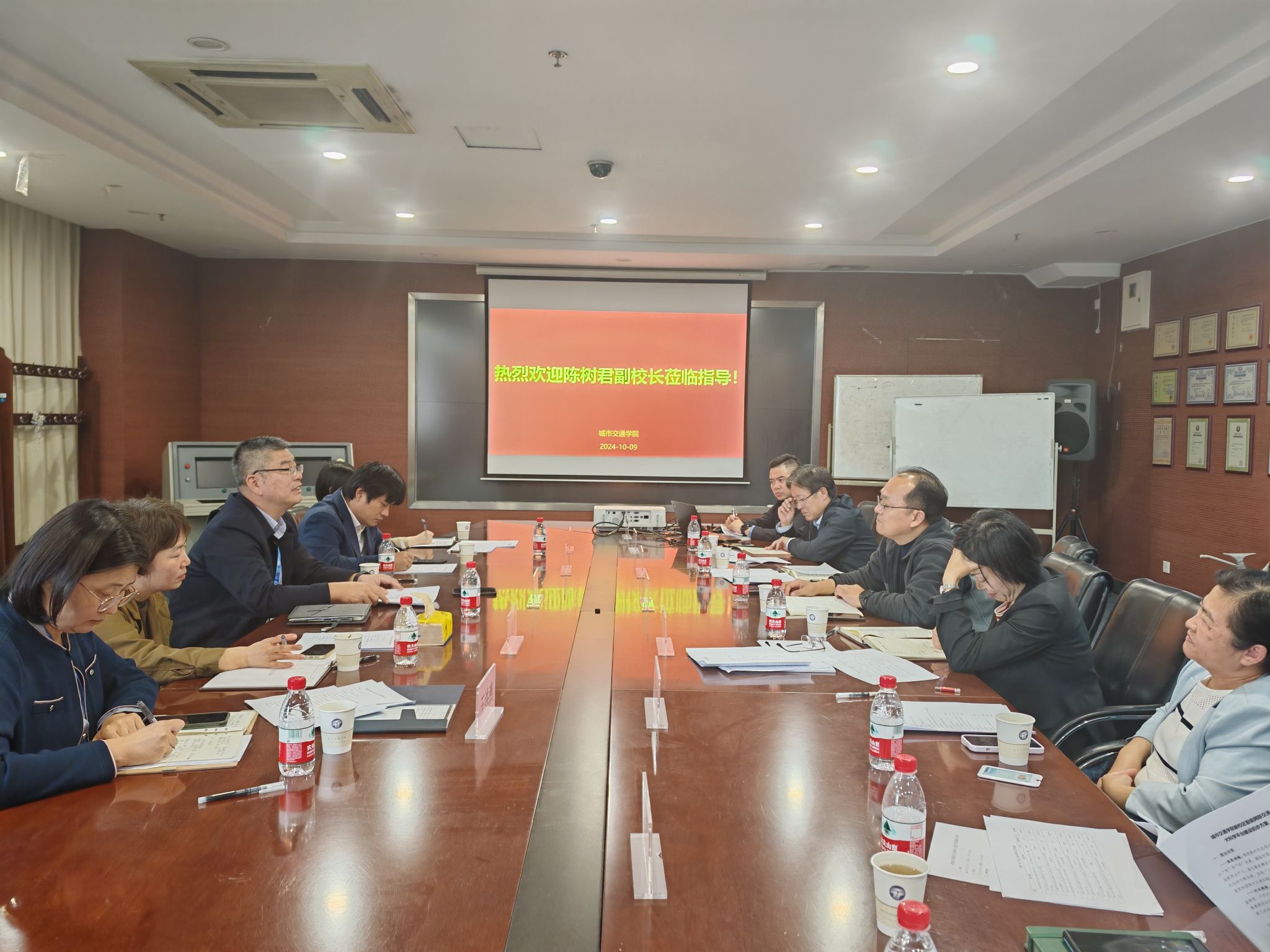 首先陈树君副董事长介绍了来院调研的目的。随后孙立山经理汇报公司整体科研发展现状及智能网联交通大科学平台筹划进展,各重点科研项目负责人分别介绍了科研课题进展情况、遇到的困难以及未来研究计划。陈树君副董事长和随行领导认真听取汇报,对汇报过程中发现的问题和不足,有针对性地给出了指导意见和建议。
