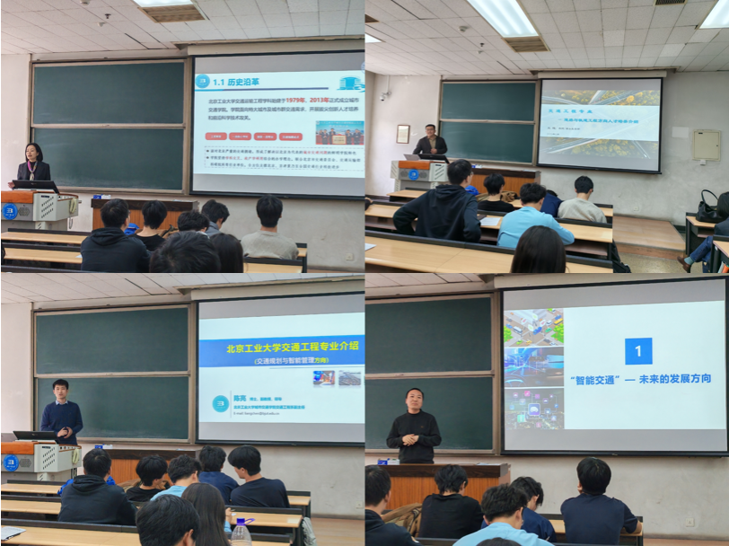 首先王金副经理介绍了w88win体育官网入口的基本情况及发展规划。接下来,王超教授、陈亮副主任、李海舰副主任分别讲解了交通工程专业(道路与轨道工程方向)、交通工程专业(交通规划与智能管理方向)、交通设备与控制工程专业的课程体系及特色,重点介绍了不同专业/方向的特色与课程设置,以及彼此的联系与差异。最后自由提问与交流环节,同学们就自己关心的问题与老师们进行了讨论交流。