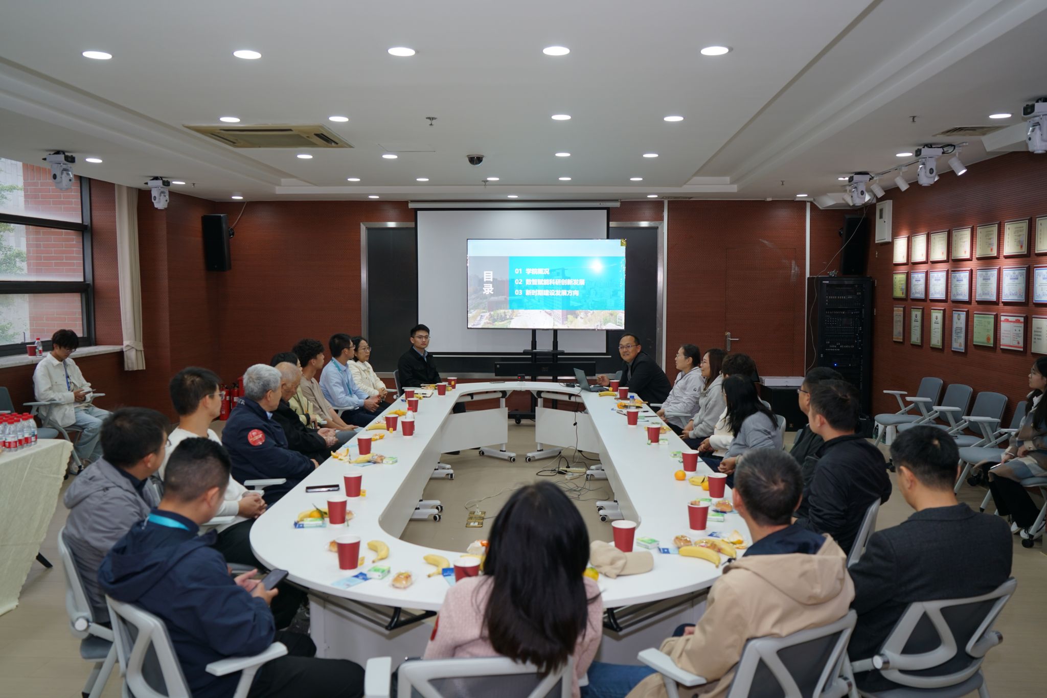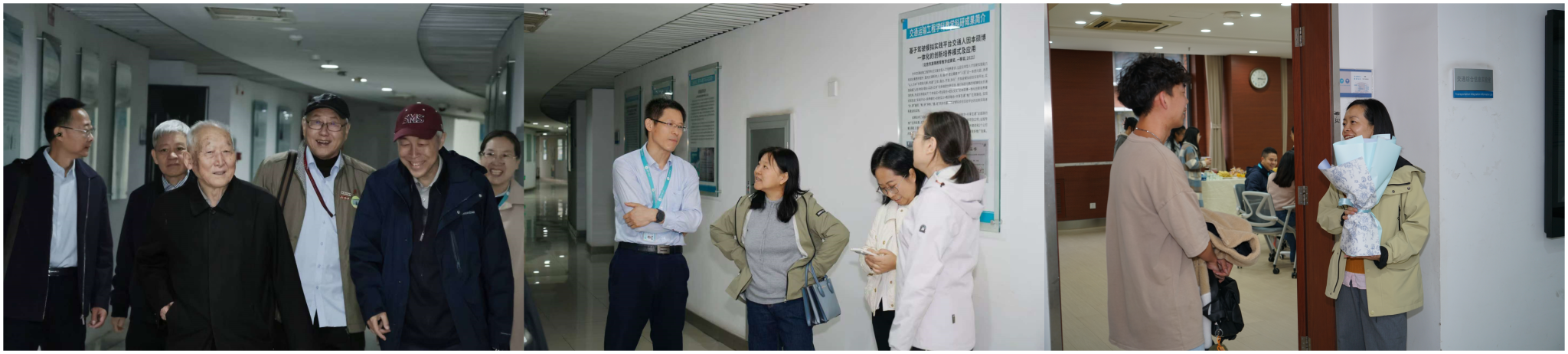 10月12日上午,公司师生和员工代表齐聚城建楼322观看了高质量发展大会转播。随后,员工们在公司师生的引导下,有序参观了公司重点实验室。从先进的交通仿真模拟系统到智能车辆检测平台,员工们近距离了解了公司近年来在教学科研硬件设施上的显著提升,对公司在团队建设上的投入和成果表示高度认可,不少员工结合自身行业经验,与现场师生就实验设备应用和科研项目开展交流探讨。