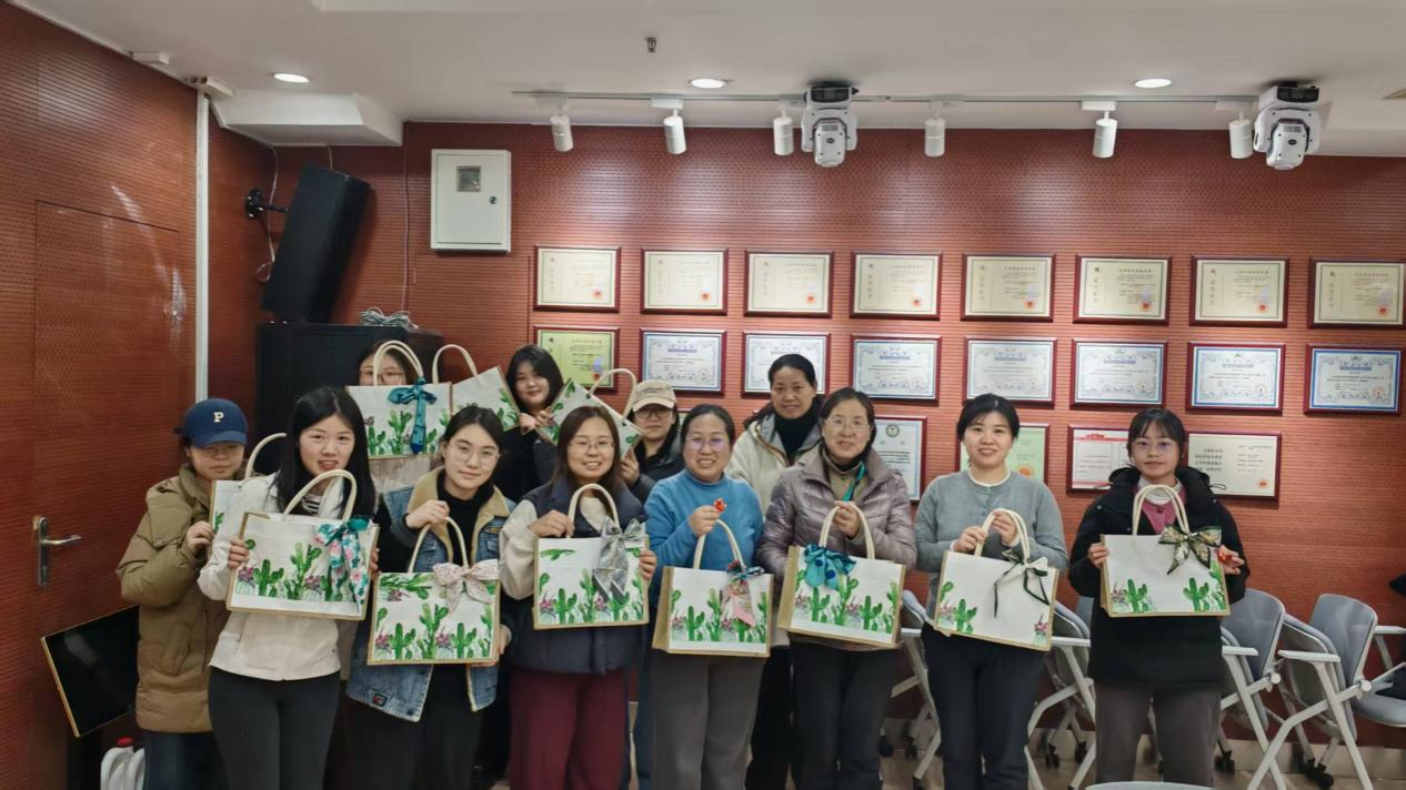 活动现场暖意融融、欢声笑语不断。公司为大家准备了素色帆布手提袋、环保颜料、画笔、装饰贴纸、创意模板等丰富材料,让大家在动手创作中释放压力、感受艺术之美。平日里坚守在教学、科研、管理与服务一线的女教职工们,暂时放下忙碌的工作,化身创意设计师,尽情发挥巧思与审美。大家或精心勾勒线条,或大胆搭配色彩,或贴上个性装饰,将对生活的热爱、对美好的向往,一笔一画绘入手提袋之中。