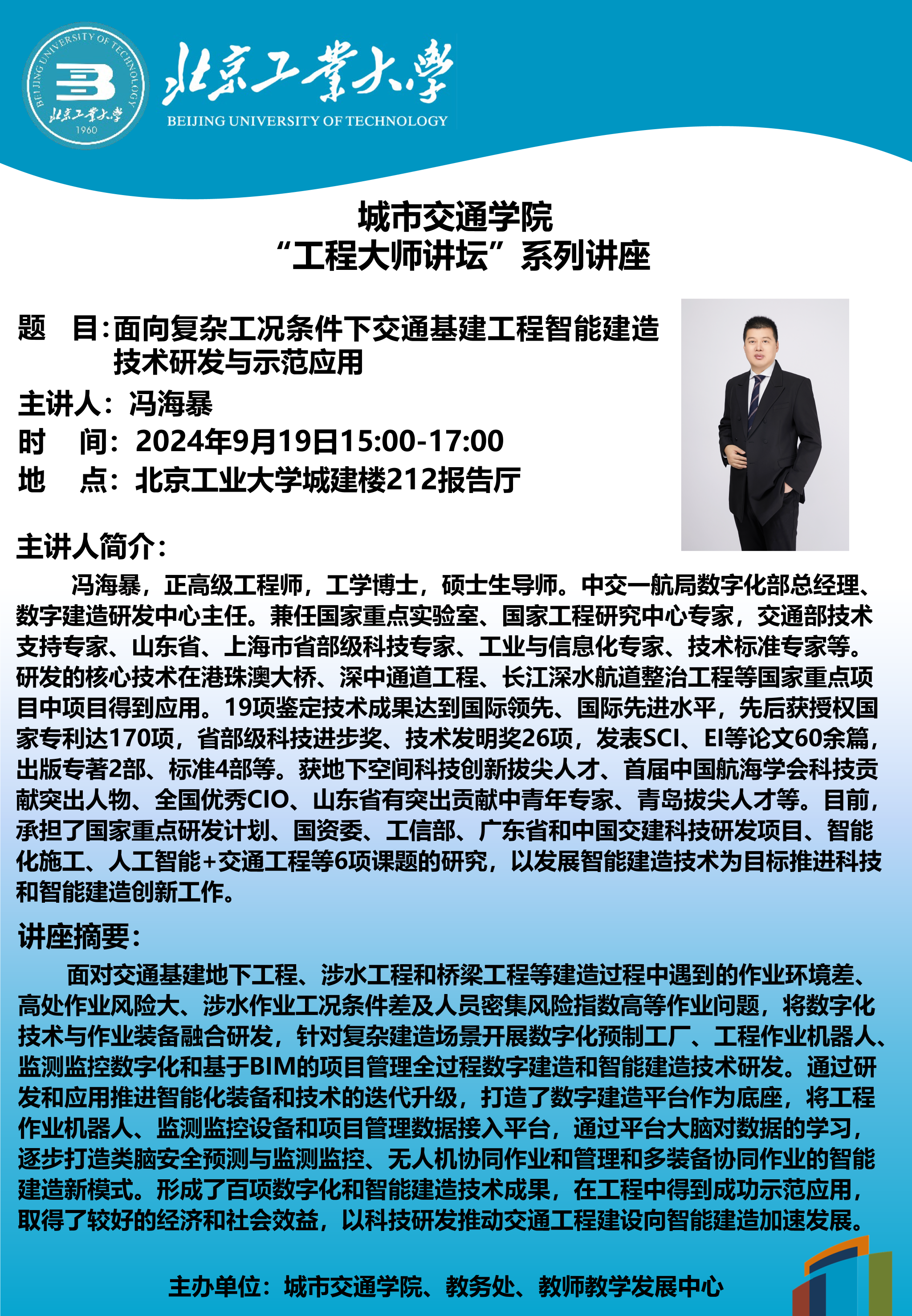 【交通 | 学术报告】w88win体育官网入口"工程大师讲坛"系列讲座— 面向复杂工况条件下交通基建工程智能建造技术研发与示范应用