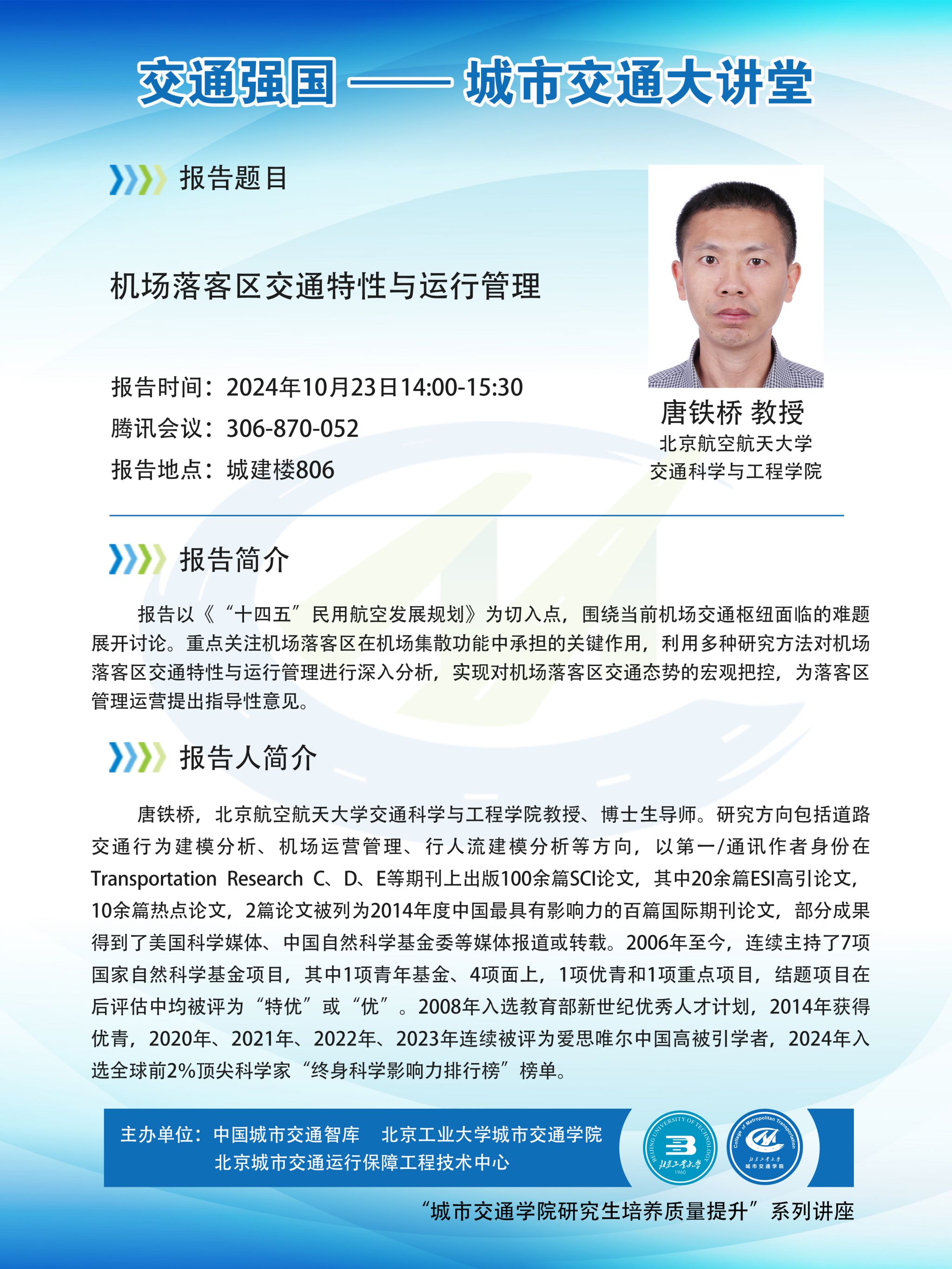 【交通 | 学术报告】 交通强国·城市交通大讲堂——机场落客区交通特性与运行管理