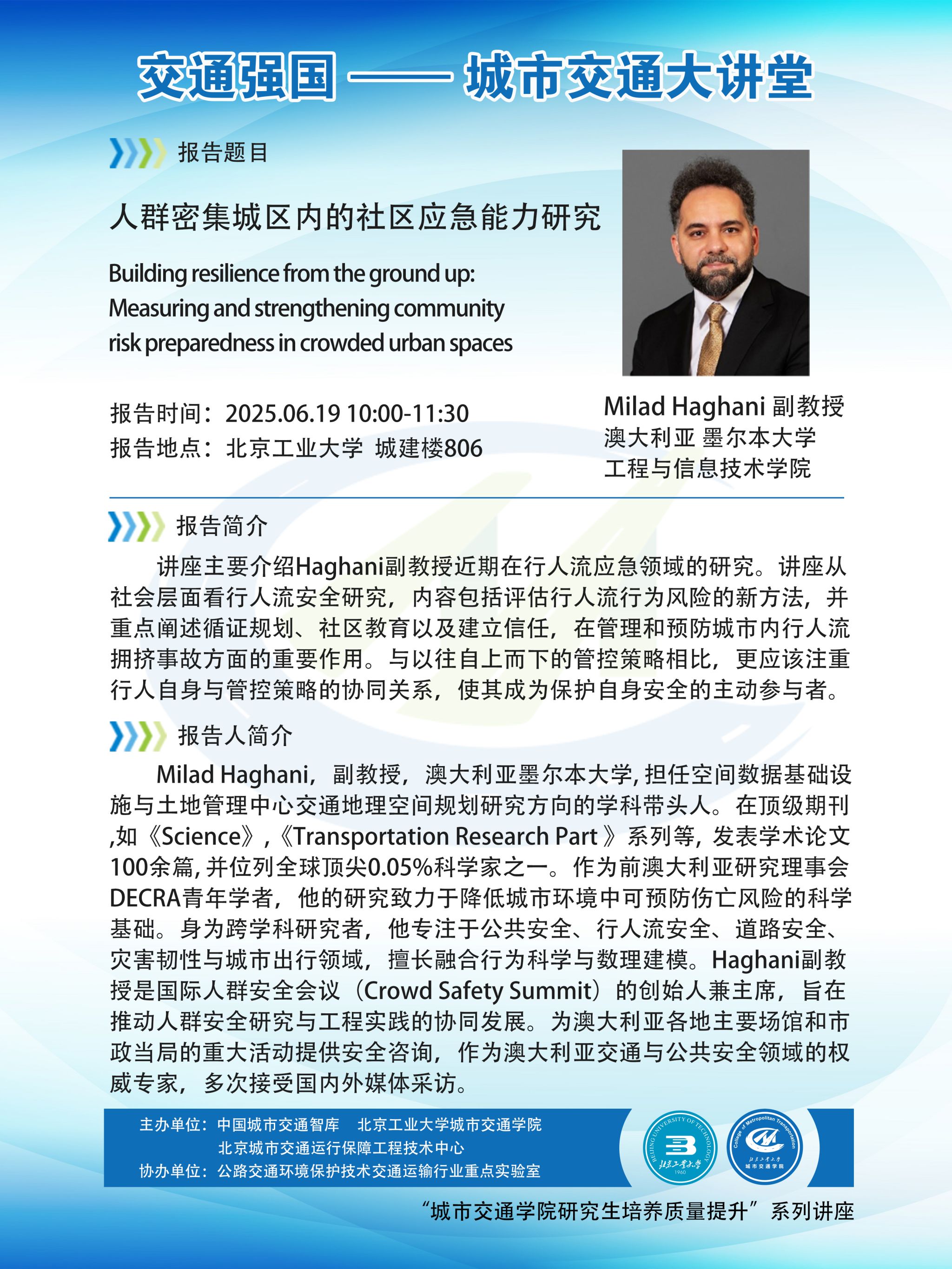 【交通 | 学术报告】 交通强国·城市交通大讲堂——人群密集城区内的社区应急能力研究