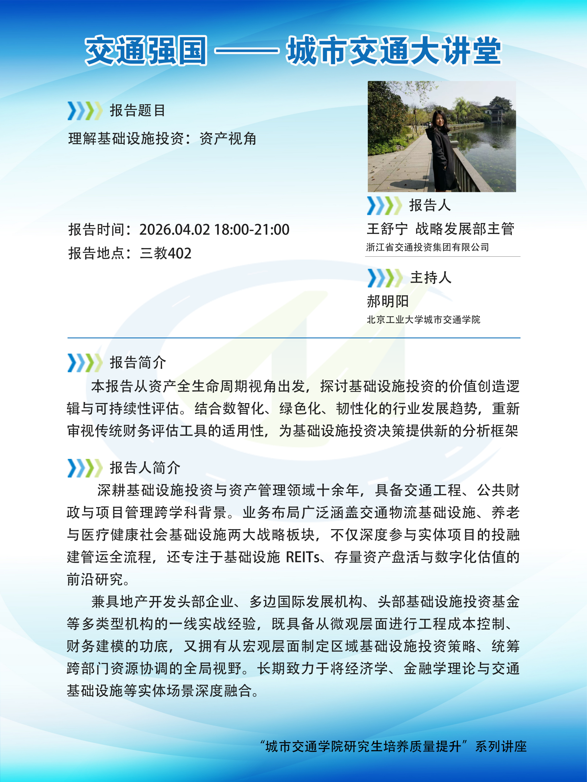 【交通 | 学术报告】 交通强国·城市交通大讲堂——理解基础设施投资:资产视角
