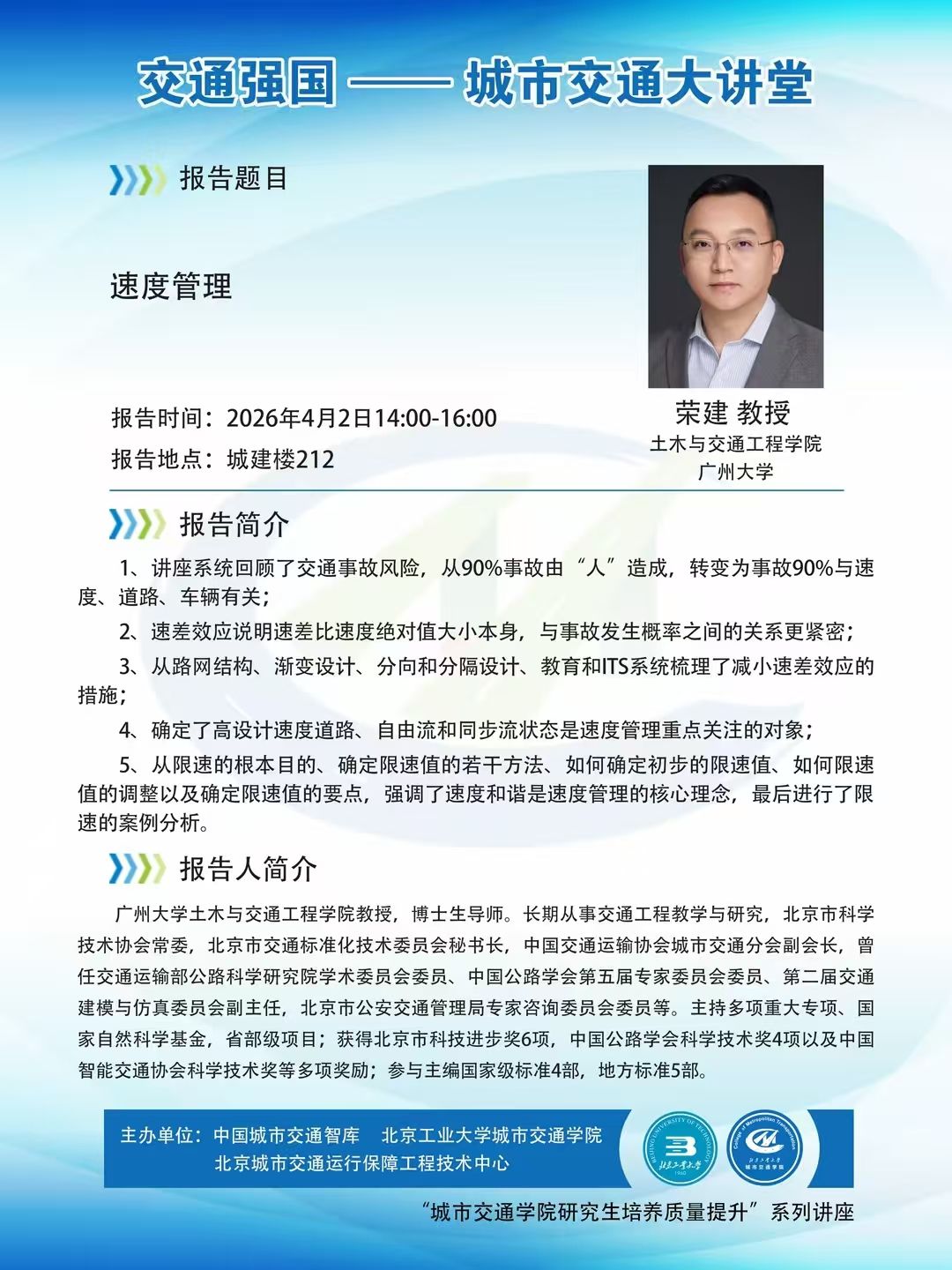【交通 | 学术报告】 交通强国·城市交通大讲堂——速度管理