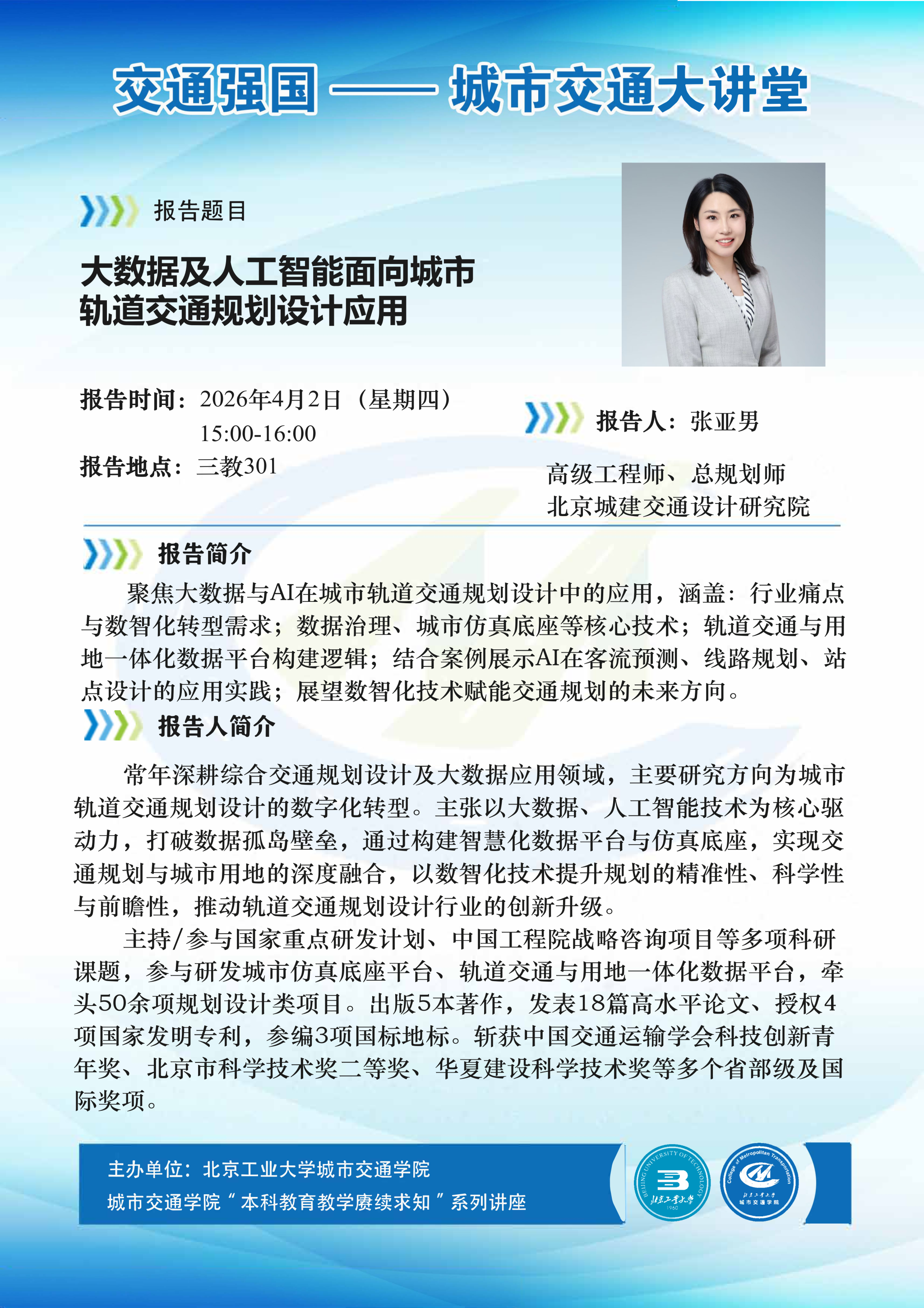 【交通 | 学术报告】 交通强国·城市交通大讲堂——大数据及人工智能面向城市轨道交通规划设计应用