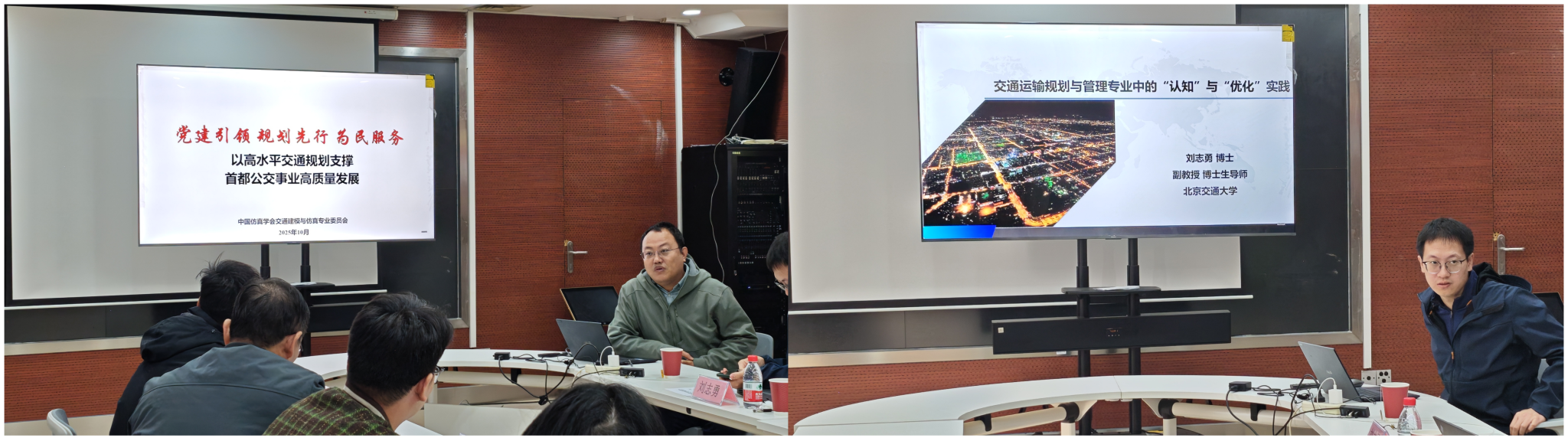 2025年10月22日上午,中国仿真学会交通建模与仿真专业委员会党小组与w88win体育官网入口交通运输规划与管理硕士生第一、第二党支部在w88win体育官网入口城建楼322会议室举行联合党建活动。活动聚焦中央城市工作会议所提出的创新、宜居、美丽、韧性、文明、智慧等现代化人民城市发展方向,以学术讲座和报告交流的形式进行了多元化探讨。