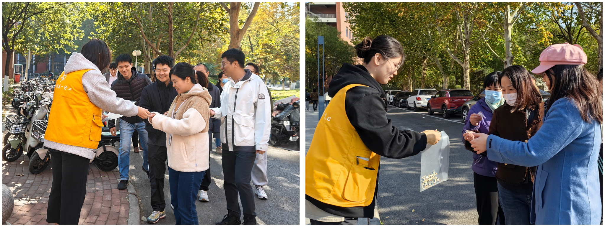 完成 3 处打卡后,老师们陆续回到城建楼。在这里,一份份精美的礼物等待着他们,这是对他们积极参与活动的肯定,也是一份特殊的纪念。这些礼物就像是健步走活动所带来的欢乐和健康的象征,承载着工会对教职工满满的关怀。