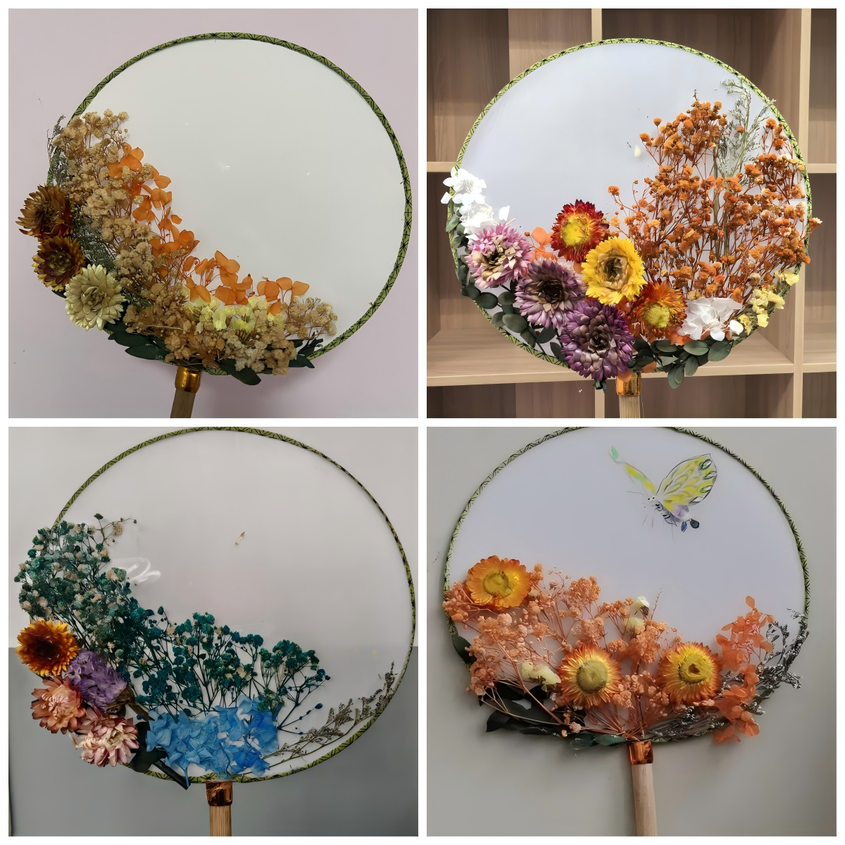 随后“DIY干花团扇”在四教620教室如期举行。在轻松愉快的氛围中,女教职工们将干花与团扇巧妙结合,创作出一幅幅既典雅又实用的工艺品。每一把团扇都凝聚着制作者的智慧与心血,展现了她们对美的追求与热爱。