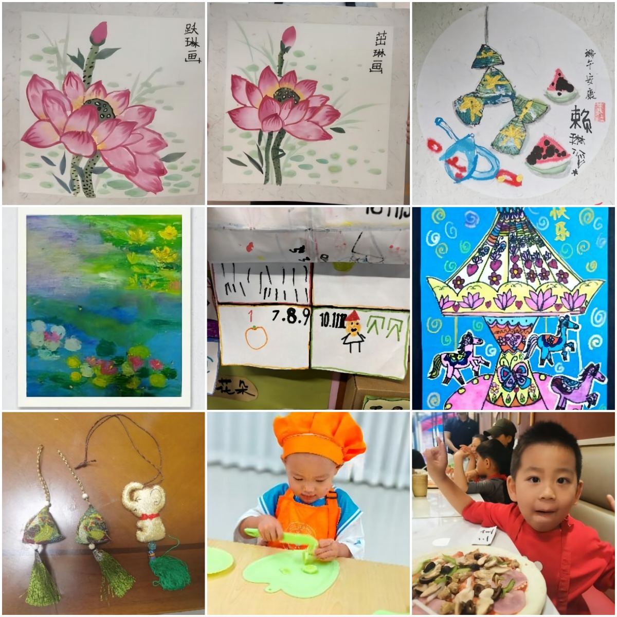 活动以“文化浸润”为核心,将儿童节的童趣与端午佳节的传统元素深度融合。手工类里,彩布缝制的粽子香囊精致典雅,绣着可爱图案的挂饰灵动有趣绘画作品中,水彩、油画棒画绘出赛龙舟的热闹、包粽子的温馨;还有摄影定格端午瞬间、手抄报展现习俗,各类作品从不同角度展现端午独特魅力。