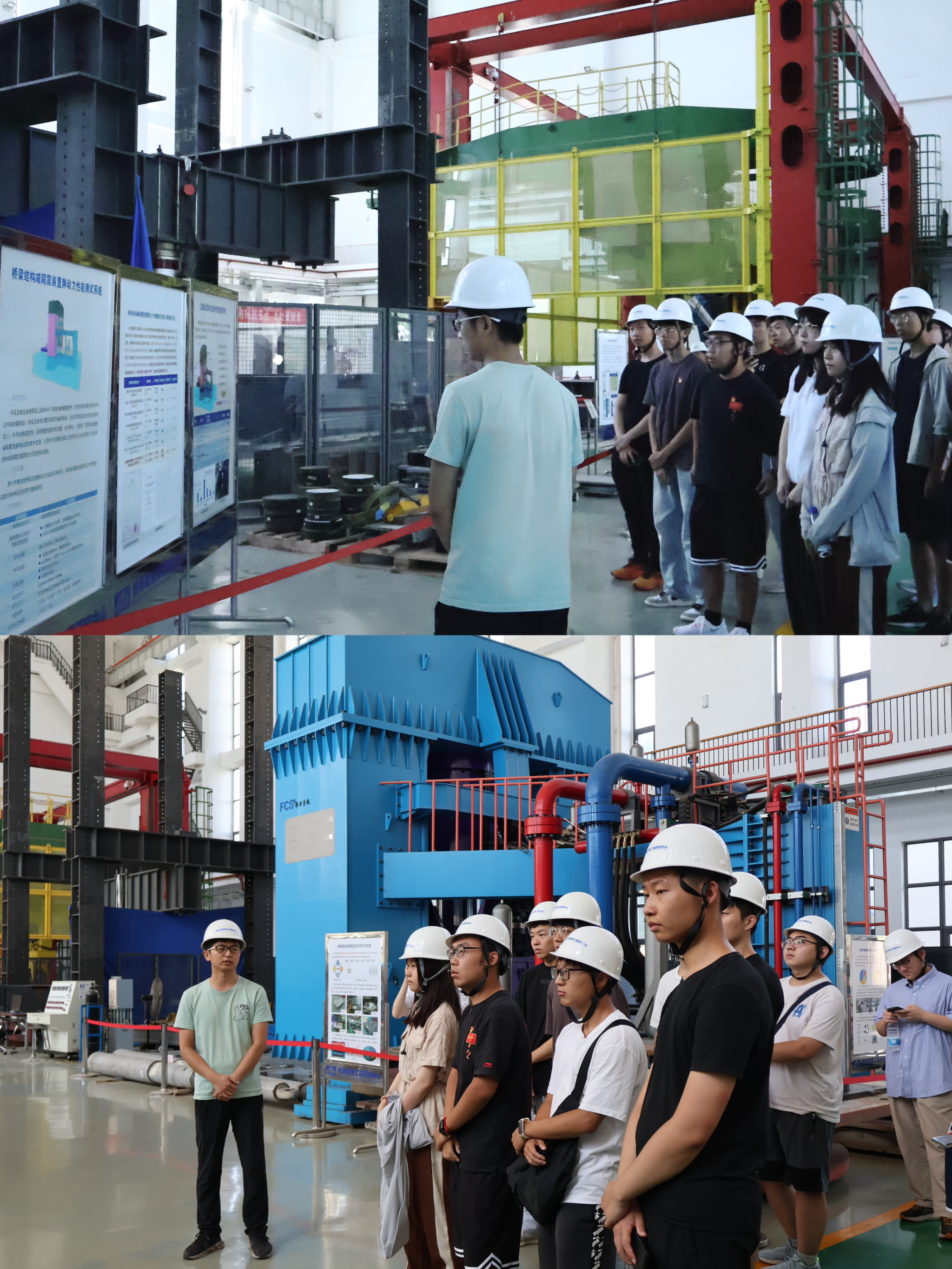 在中交集团长大桥中心负责人的引领下,师生们首先参观了结构实验室。这里展示的自主研发、技术指标国际领先的减隔震装置静动力测试系统、阻尼装置动力测试系统、桥面轮式滚动疲劳实验机等设备,不仅令人震撼,更是“两弹一星”精神的具体体现。这些设备的研发与应用,不仅提升了我国在桥梁建设领域的技术实力,也为交通强国战略的实施提供了坚实的技术支撑。