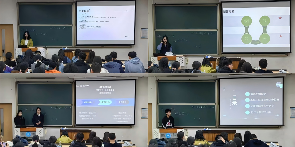 科技竞赛经验分享会帮助新生快速、全面地了解科技竞赛的相关信息以及推免的种类、要求。w88win体育官网入口多位往届大赛获奖团队负责人分享自己的优秀研究成果以及科研项目的经历,参加重大比赛的经验,以便新生们为后续的“挑战杯”“互联网+”等竞赛活动做好准备,并对自身的前景做出规划,吸引众多员工参与分享交流活动。在分享会上,赵睿琪学姐分享了自己的个人经历,介绍了推免的种类及要求,强调了学业规划的重要性;邱珂昕学姐则以“废旧沥新”项目为例,详细介绍了研究项目的背景、意义、内容和步骤;马雨欣和司宇轩学姐则聚焦于交通科技竞赛,分享了信息获取的技巧和明确方向的重要性,详细的讲解了答辩技巧和常见问题的应对策略,帮助新生们更好地准备参赛;最后,公司团直科创部成员还为大家介绍了科技竞赛的不同类别,帮助新生们认识竞赛的广泛性和多样性,并根据需求及兴趣选择要参加的竞赛。