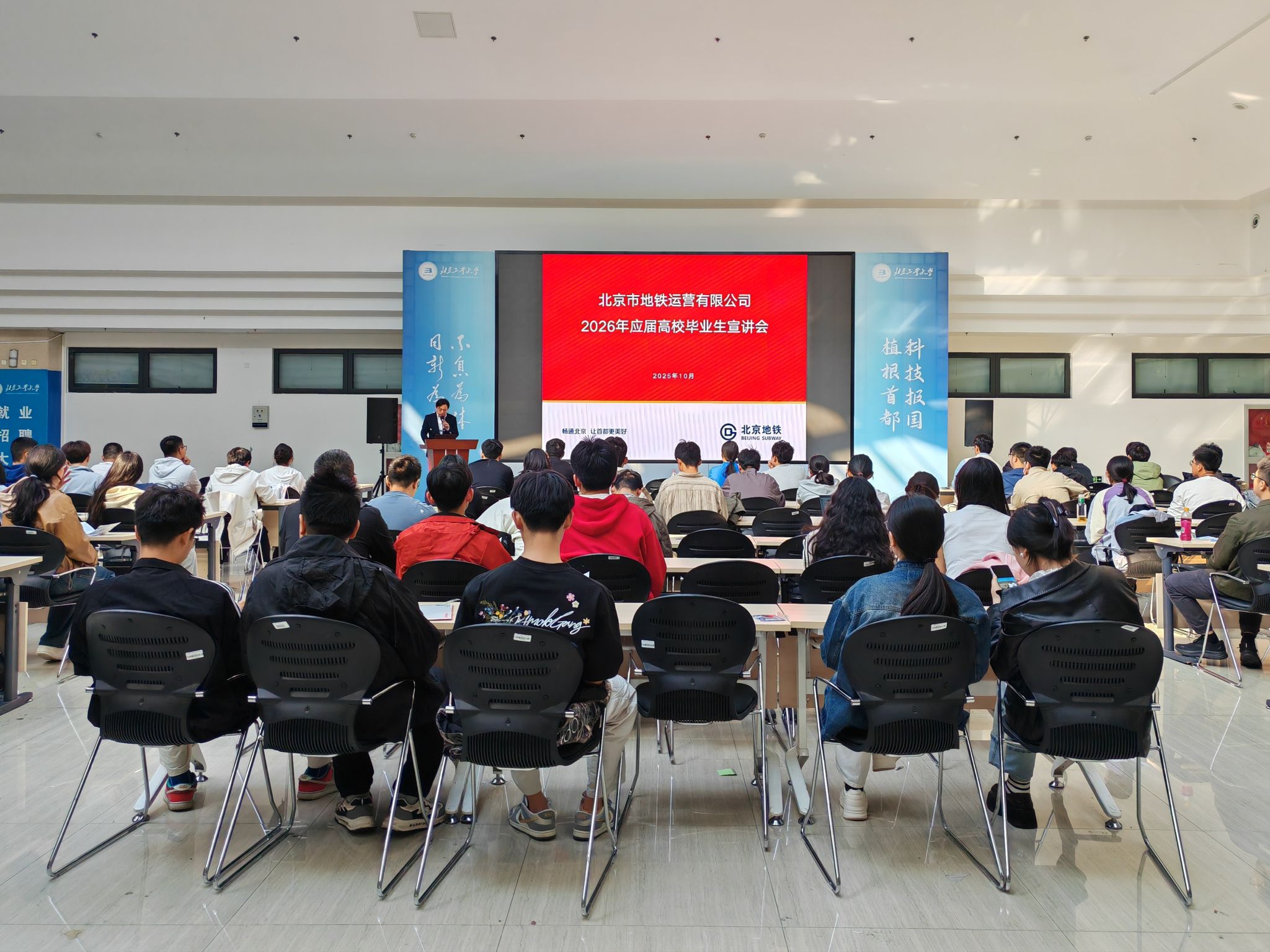为深入贯彻党中央、国务院关于高校毕业生就业工作的决策部署,搭建优质校企对接平台,助力学子明确职业方向、精准择业就业,近日,w88win体育官网入口联合北京市地铁运营有限公司在公司举办北京地铁2026届校园招聘宣讲会及双选会。本次宣讲面向全校各年级、各专业员工,吸引了百余名对轨道交通行业感兴趣的学子到场参与,现场气氛热烈。