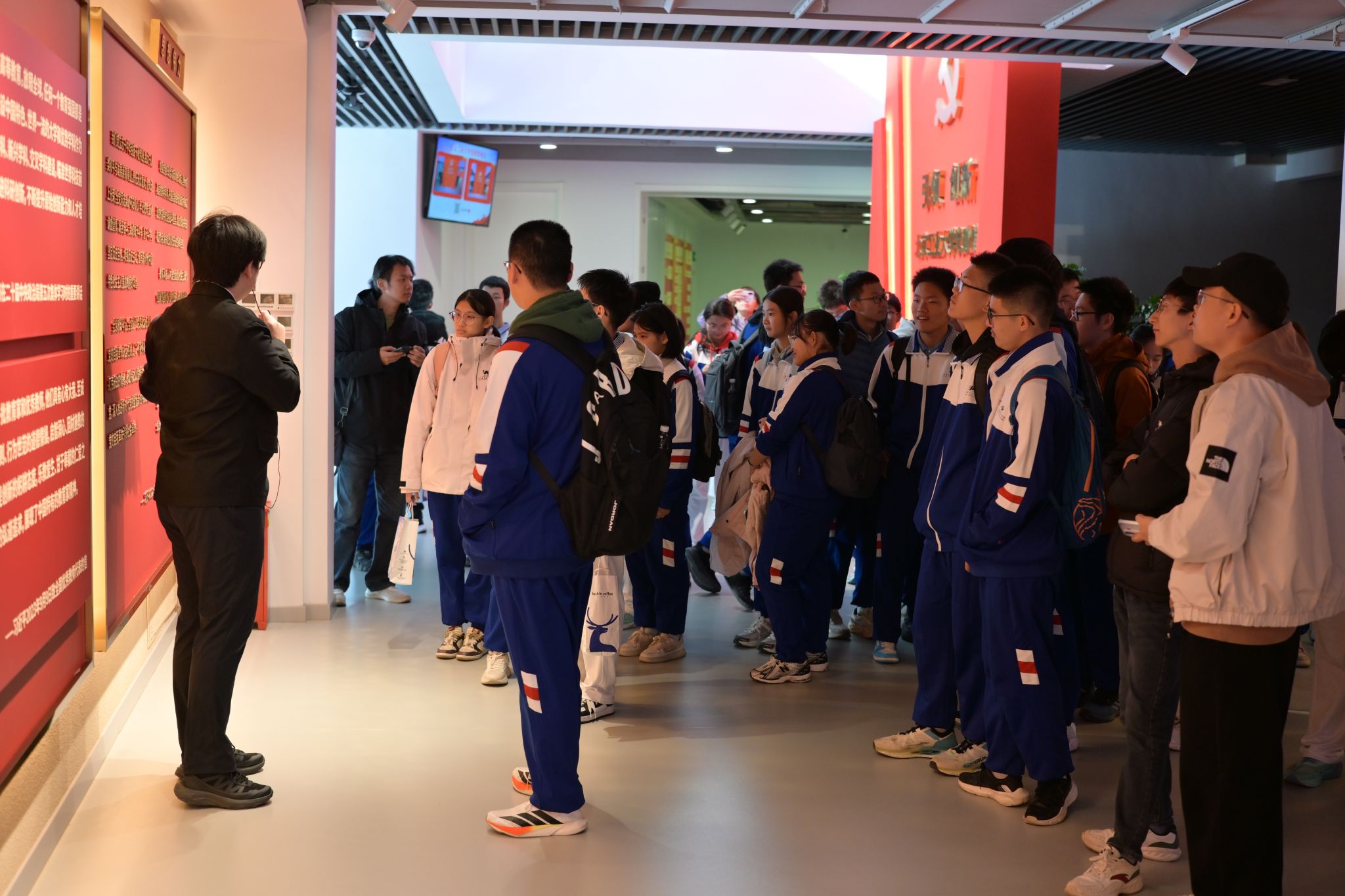 党建馆作为本次游览的最后一站压轴出场。公司党建馆结合本校特色,介绍了“青马班”青年教师思想建设思路、党建工作“样板支部”工作方式等。此外,党建馆还通过现代电子设备,展示公司各学部党委工作理念、具体工作举措和成效等,让来访员工切实感受到党建工作的落地实施。