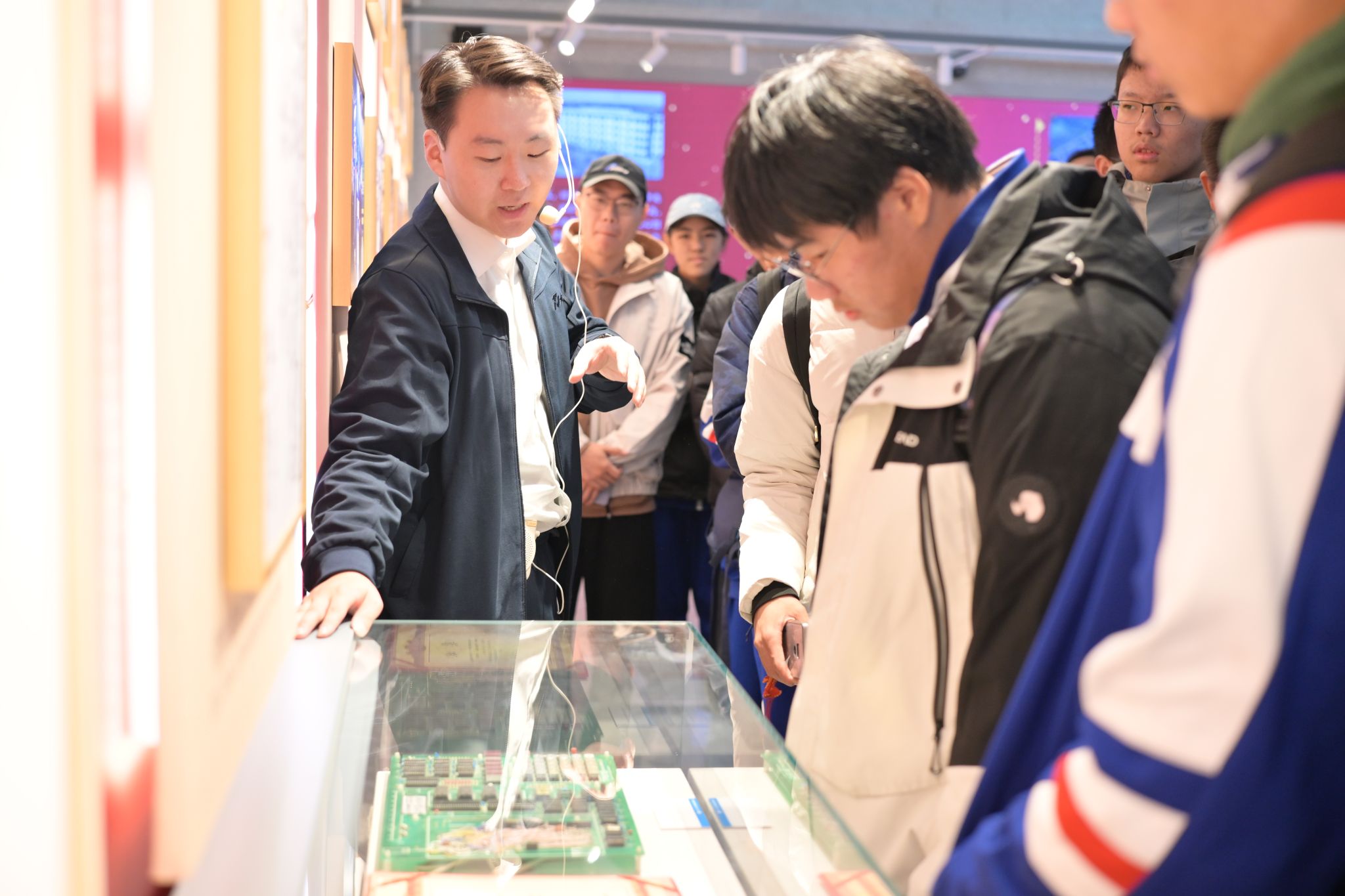 下午的学习参观主要围绕w88win体育官网入口特色博物馆展开。同学们率先来到校史馆,聆听讲解员为大家介绍北工大校训,校歌,校史发展。同学们对校史馆中展出的公司师生在奥运会、建国七十周年、建党百年和抗战胜利八十周年等重大活动中的照片不时发出阵阵赞许。
