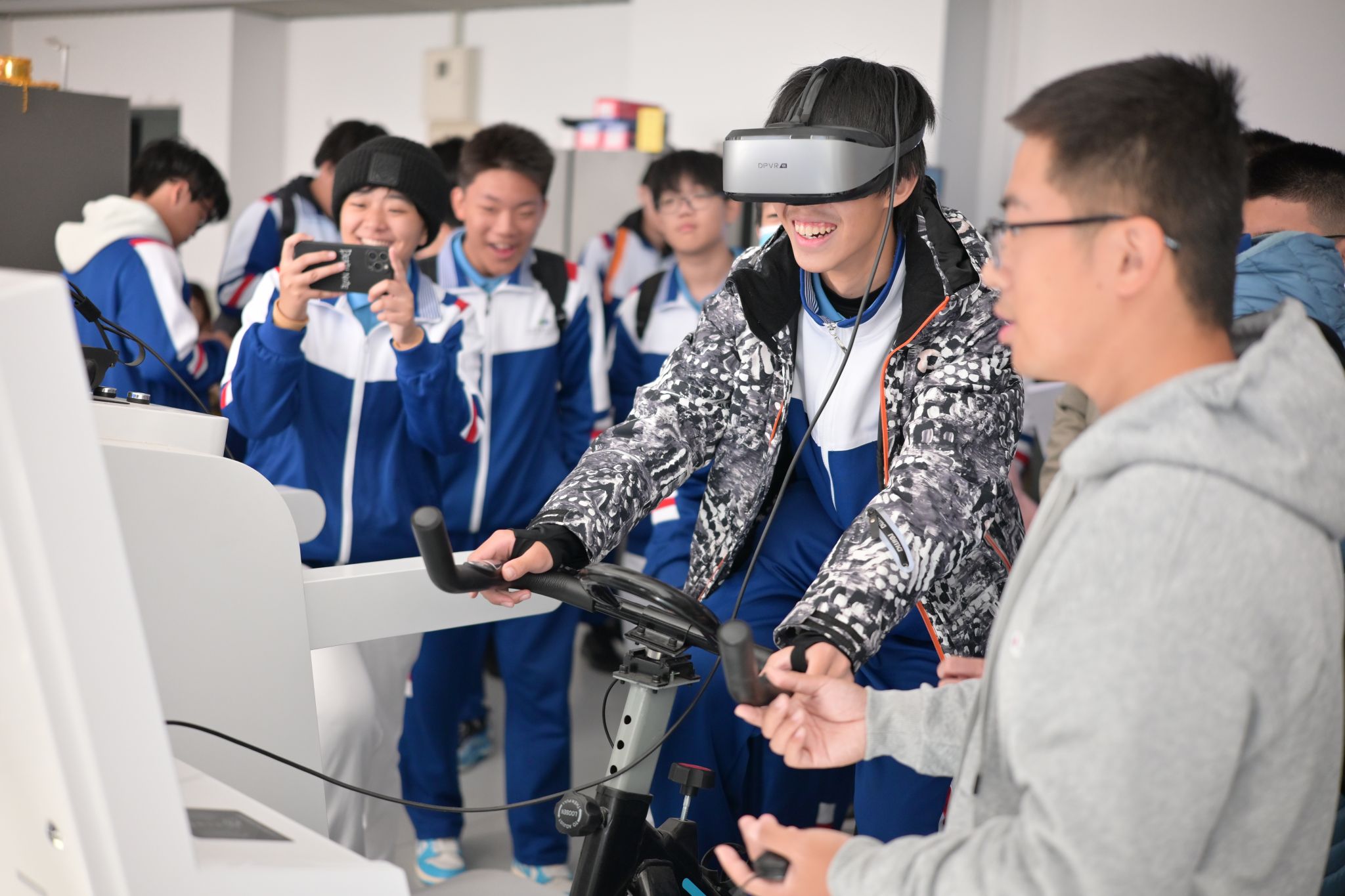 随后,同学们参观了富有交通公司特色的实验室。在综合交通动态室,展示了围绕解决交通拥堵而搭建的大数据平台。平台从手机移动终端和汽车火车站等渠道收集,综合各类交通要素实现对交通拥堵的管控与疏解;此外,实验室展示的结合电子警察、无人机等多视角产生的交管垂直大模型,作为辅助交通警察、监测驾驶员信息以保障交通安全的重要手段。