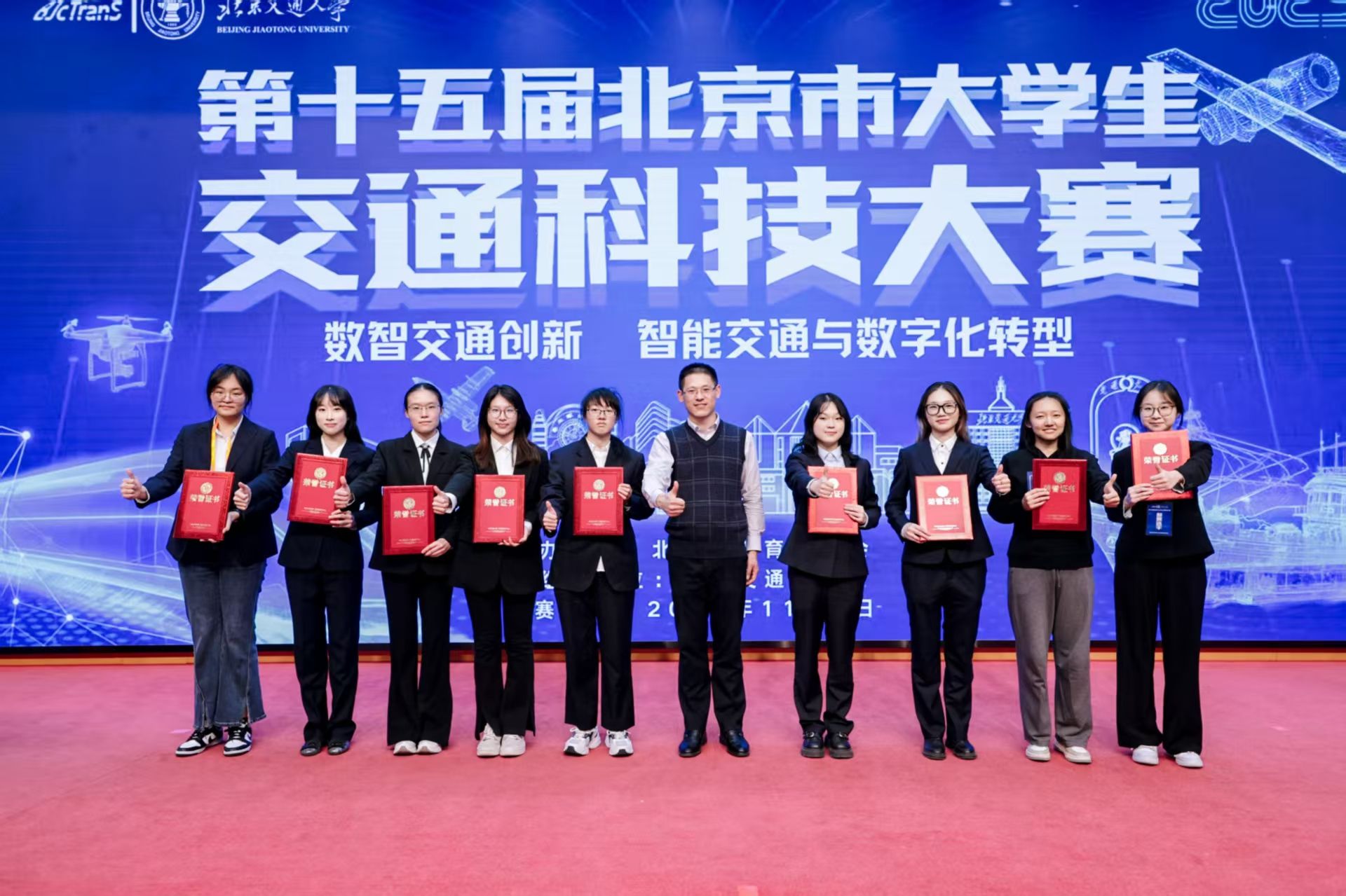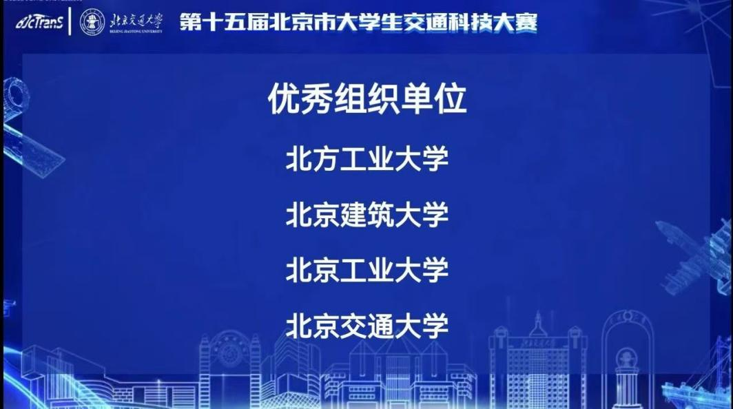 11月2日,由北京市教委主办,北京交通大学承办的第十五届北京市老员工交通科技大赛圆满闭幕,来自首都16所高校的81支队伍入围总决赛的争夺。本次大赛,w88win体育官网入口共有11支队伍入选最终决赛,最终斩获8个奖项,包含一等奖1项,二等奖4项,三等奖3项,在参赛高校中名列前茅。同时w88win体育官网入口获得本届大赛的“优秀组织单位奖”,w88win体育官网入口李佳、赵晓华老师荣获“优秀指导教师奖”。