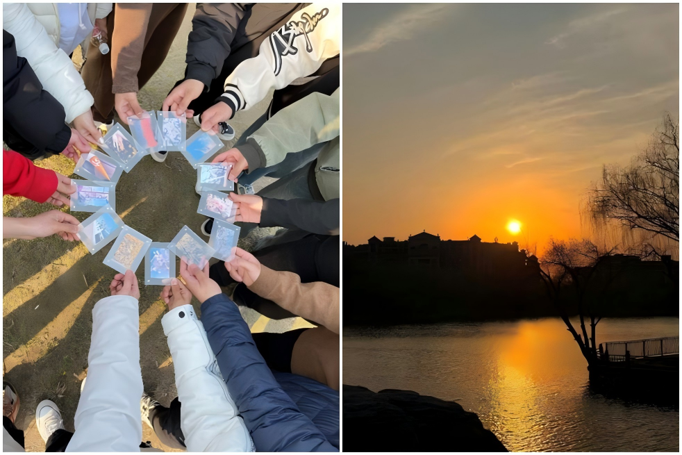 漫步环节结束后,同学们围坐在草坪上,打印出自己拍摄的照片,分享起属于自己的“颜色故事”。有人捕捉到湖面倒映的柳枝,有人记录下路边悄悄绽放的野花——每一张照片,都是与春日的一次温柔对话。分享过程中,同学们展示着自己眼中的春天,也在倾听中感受彼此的视角与情感。